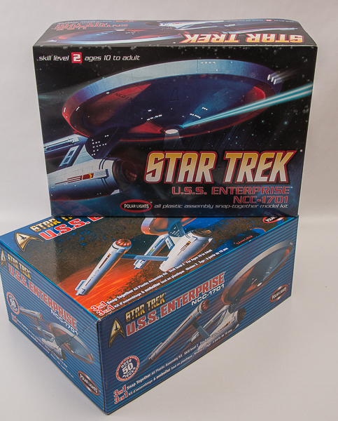 These kits offer some great possibillities with lighting and even laser effects. Polar Lights has a larger scale Enterprise kit (1/350 scale) with optional lighting kits, however these smaller scale versions do not. I've already sourced miniature elecrtic motors for the engine necelles, micro-LEDe, flashing IC circuits and wiring diagrams for the different lighting systems throughout the kit. I'm considering a means of back-lighting crisp, rectangular windows through the plastic using opaque masks. Where there's a will, there's a way..
